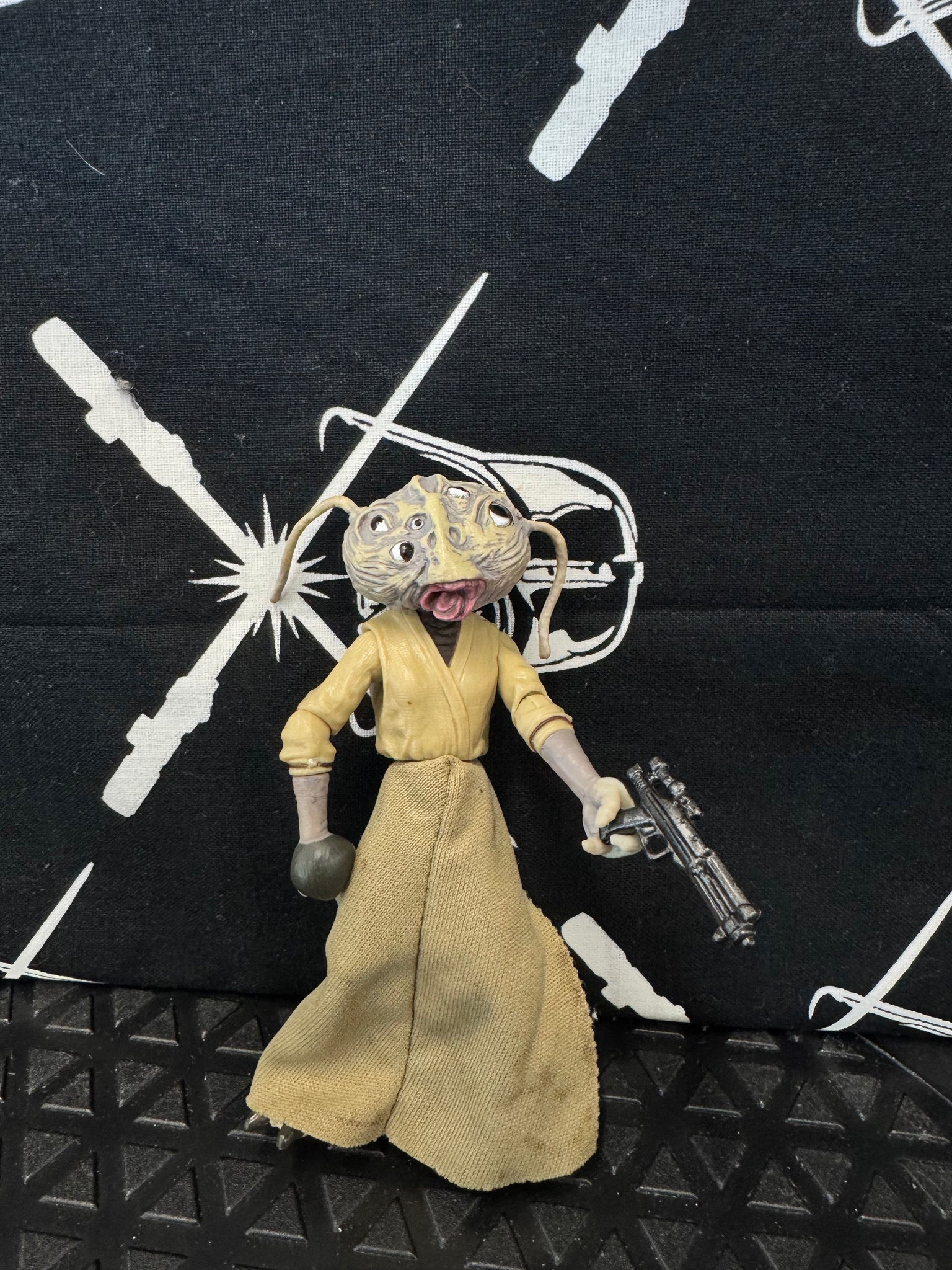 Wioslea is a salesperson for Spacesport Speeders, a used landspeeder lot in Mos Eisley. Swayed by Kenobi’s Jedi mind trick, the female Vuvrian offers Luke 2,000 credits for his landspeeder, which he sells to pay for the trip to Alderaan.