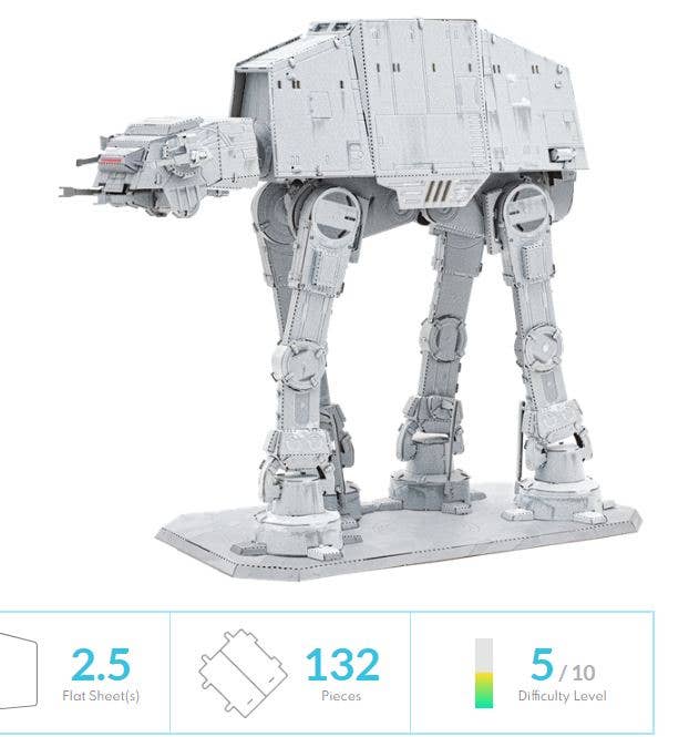 Premium Series Metal Earth Imperial AT AT walker - This amazing 3D metal model kit starts as flat metal sheets with intricate details etched onto individual pieces. A set of easy to follow instructions are included and No glue or solder is required. Simply snip out the pieces and bend the tabs through corresponding connection points.