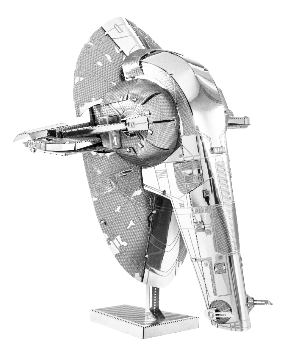 Dive into the world of Star Wars with Metal Earth's Slave I decorative figurine. This 3D metal model kit starts as a flat metal sheet and transforms into your very own Star Wars masterpiece. With over 300 unique designs, Metal Earth offers an engaging, hands-on experience for all. You'll enjoy the process of snipping the pieces from the flat steel sheets, bending the tabs through corresponding connection points, and following the detailed assembly flow chart to create this iconic piece. Add a touch of the galaxy to your home decor with this unique piece.