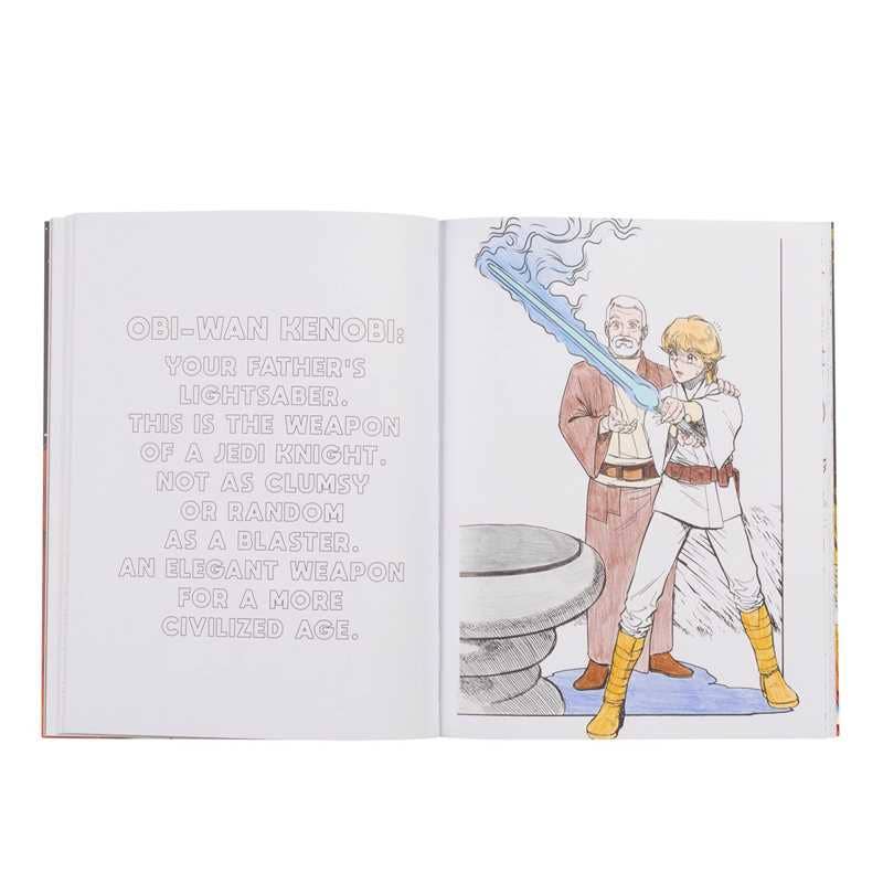 Color your way through the story of Star Wars: Episode IV A New Hope in this fun manga coloring book that illustrates the adventures of Luke Skywalker, Princess Leia, Han Solo, and other iconic characters. Famous scenes are shown on one side of each spread, accompanied by memorable lines of dialogue on the opposite page. This book encompasses the first half of the movie, with the dramatic ending to be presented in the next volume. Star Wars fans and colorists of all ages will enjoy reliving their favorite moments from the film as they color in each scene.