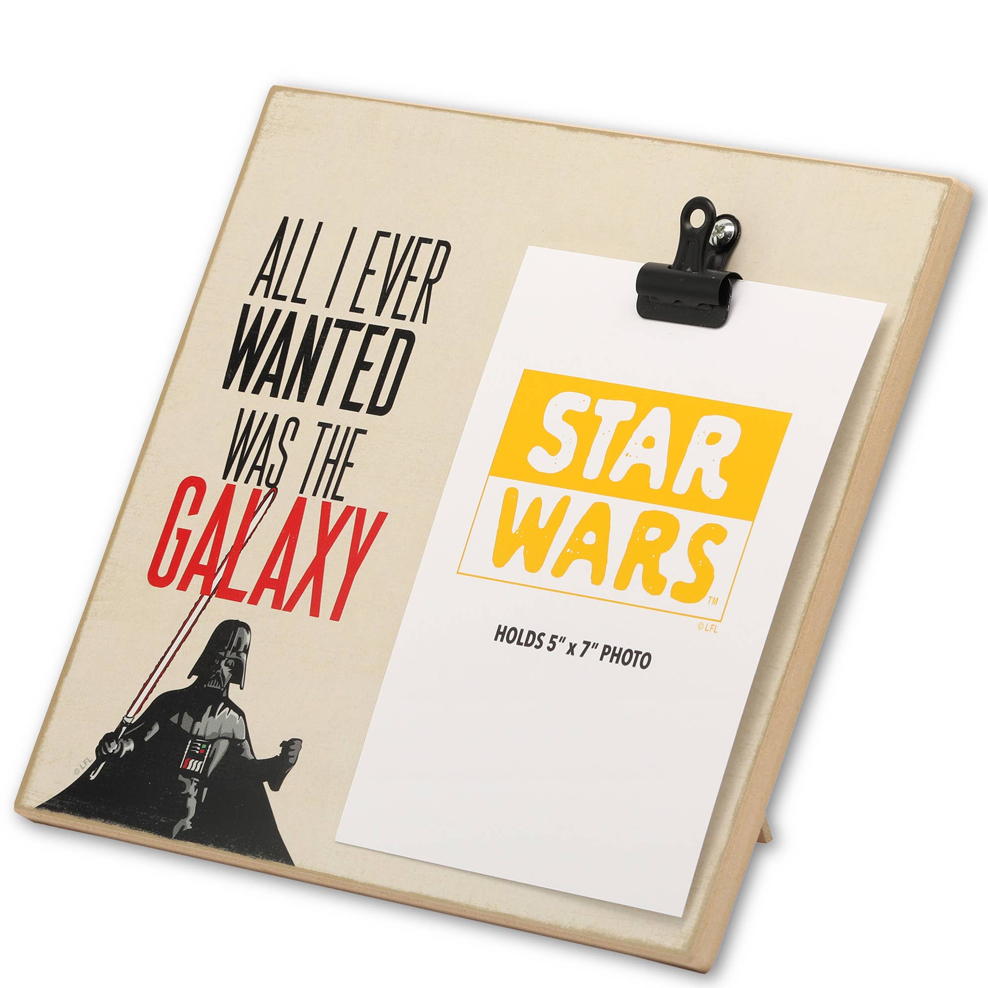 Wood Photo Clip Frame: Reading, "All I ever wanted was the galaxy," this frame takes a playful approach to celebrating your love of all things Dark Side.